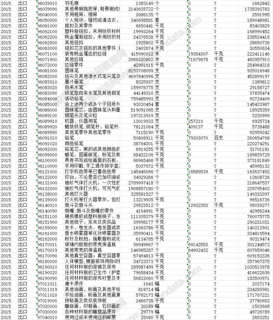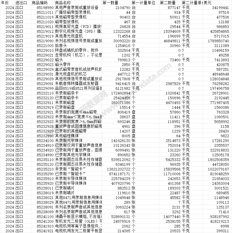 年份 出口 商品编码 商品名称 第一数量 第一计量单位 第二数量 第二计量单位 美元