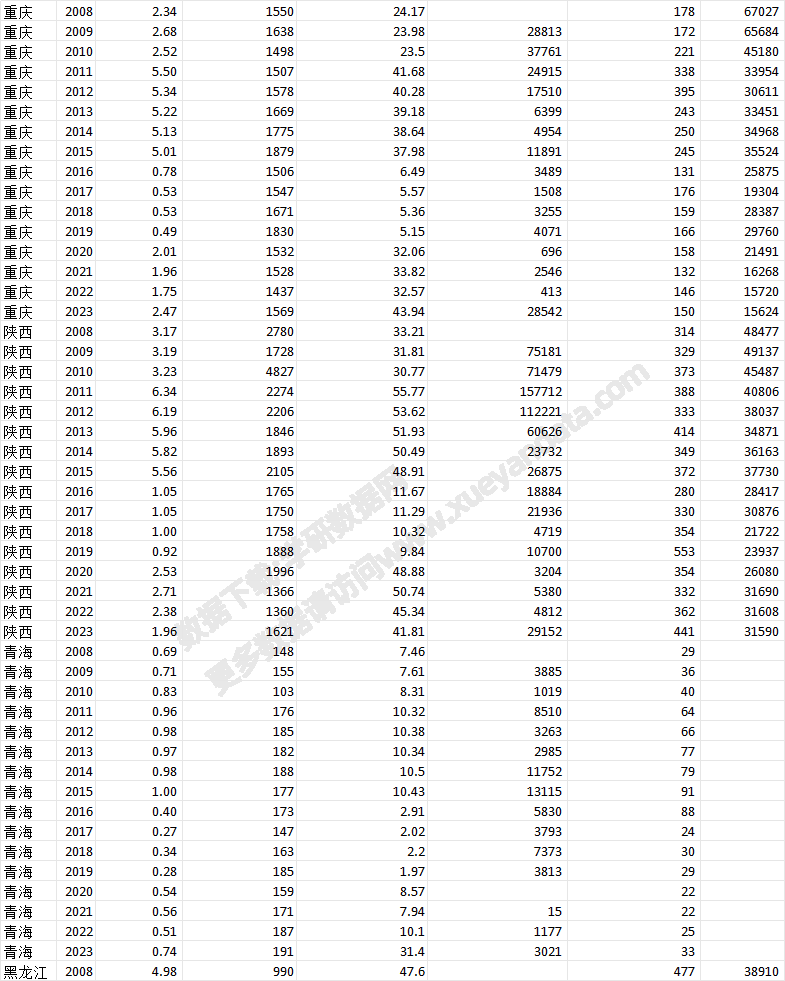 各省份污水排放、治理数据 2008~2023,个别指标有少量缺失,介意勿拍